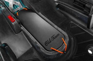 Console floor plug stores in the tank well and can be used to keep water out when the motor is removed or you want to paddle